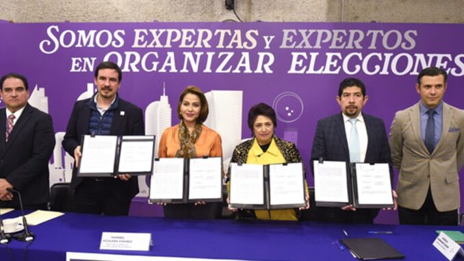 El convenio fue firmado durante un acto protocolario en la sede central de este instituto, en presencia del consejero electoral Ernesto Ramos Mega, y de autoridades de Talleres Gráficos y del IECM.