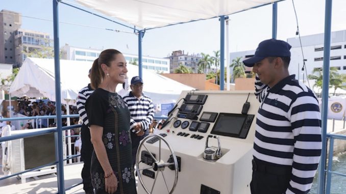 La Comandanta Suprema de las Fuerzas Armadas hizo entrega de la Bandera Nacional al Comandante del Marinabús. Además, realizó la supervisión de la Administración del Sistema Portuario Nacional (ASIPONA) de Acapulco, la cual, anunció, tendrá una rehabilitación del 10 por ciento, mientras que el 90 por ciento no será intervenido.