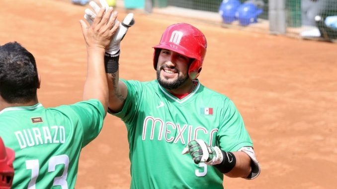 La selección mexicana armó rally de cuatro anotaciones en el primer rollo cuando Josué Villalvazo recibió pasaporte, posteriormente se robó la intermedia y con dos outs anotó en error del receptor.