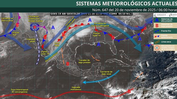 Pronóstico de lluvias para este 20 de noviembre de 2025