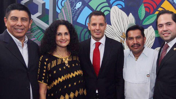También la senadora Susana Harp, los senadores Raúl Bolaños Cacho Cué y Salomón Jara; así como la titular de la Secretaría de Desarrollo Social y Humano (Sedesoh), Yolanda Martínez López.