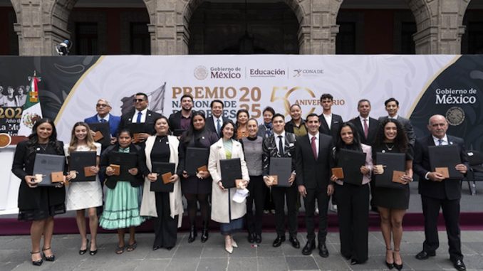 La Presidenta entregó el Premio Nacional de Deportes 2025: en deporte no profesional a Andrea Maya Becerra Arizaga de Tiro con arco; Alegna Aryday González Muñoz de Atletismo; Uziel Aarón Muñoz Galarza de Atletismo y Osmar Olvera Ibarra de Clavados. En deporte profesional a Isaac Del Toro Romero de Ciclismo. En deporte paralímpico a Luis Carlos López Valenzuela de Paratletismo y Osiris Aneth Machado Plata de Paratletismo.