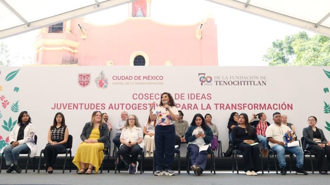 La Jefa de Gobierno de la Ciudad de México, Clara Brugada Molina, encabezó el encuentro Cosecha de Ideas en el que participaron 250 colectivos y colectivas de juventudes de la capital que forma parte del programa Juventudes Autogestivas para la Transformación, y realizó la segunda entrega de apoyos para la construcción de proyectos comunitarios juveniles para transformar la ciudad.