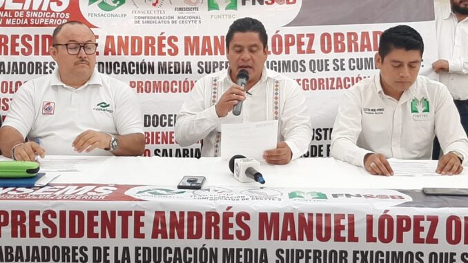 Integrantes del Frente Nacional de Sindicatos de Educación Media Superior (FNSEMS), integrado por trabajadores del Cecyte, el Colegio de Bachilleres, CONALEP y Telebachilleratos anunciaron un paro de labores para el próximo 22 de junio.