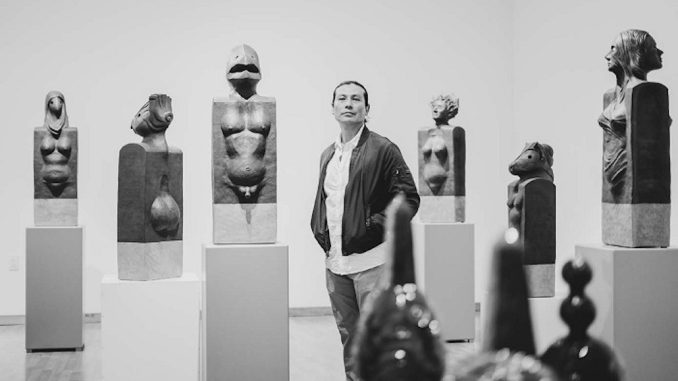 El artista oaxaqueño explica que las piezas surgieron de su investigación estética y técnica en torno al barro, que retoma métodos tradicionales de Santa María Atzompa para desarrollar un cuerpo escultórico; lo cual vincula la iconografía arqueológica con el imaginario mitológico y genera un diálogo entre lo ancestral y lo actual.