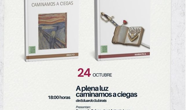 Esta jornada literaria programada a partir de las 18:00 horas, iniciará con la presentación del libro de ensayos “A plena luz caminamos a ciegas”, de Subirats. Posteriormente, a las 19:00 horas, tendrá lugar la novela histórica “Péguese mi lengua”, de Solana Olivares.