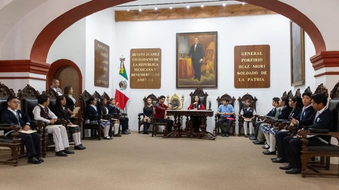 Oaxaca de Juárez, Oax., 28 de agosto de 2025.– Con la participación de estudiantes de secundaria y bachillerato, el Ayuntamiento de Oaxaca de Juárez llevó a cabo la instalación del Cabildo Juvenil 2025, un ejercicio que abrió las puertas del Salón Porfirio Díaz Mori para que las nuevas generaciones expresaran sus ideas y propuestas sobre el futuro de la ciudad.