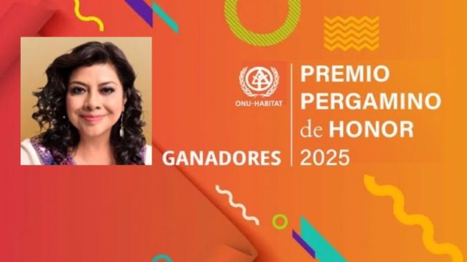 Ciudad de México, 29 de septiembre de 2025. — La Organización de las Naciones Unidas para los Asentamientos Humanos (ONU-Habitat) otorgó el Premio Pergamino de Honor 2025 a Clara Marina Brugada Molina, reconocida por su enfoque innovador en regeneración urbana y justicia social en la Ciudad de México.