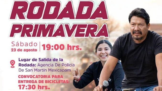 En tanto, la Rodada Primavera se realizará el sábado 23 de agosto a las 19:00 horas, con salida y meta en la Agencia de Policía de San Martín Mexicapam. Desde las 17:30 horas se llevará a cabo la entrega de bicicletas. El recorrido abarcará puntos emblemáticos como el Zócalo, Monte Albán y Avenida Valerio Trujano, generando un ambiente de unión y participación.