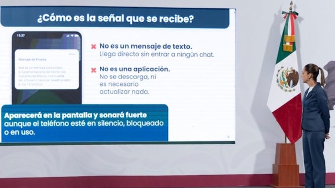 “Es muy importante, porque el nivel de penetración del celular, o sea la cantidad de persona que tenemos un celular, ya es muy alta en nuestro país, incluso en zonas rurales, entonces, a lo mejor no tienes una alarma cerca de tu casa o no sonó la alarma del sistema estatal, pero si tienes un celular en donde te alertan para que puedas tomar todas las precauciones. Entonces hay mucho avance y hay que seguir trabajando en ello”, comentó en la conferencia matutina: “Las mañaneras del pueblo”.